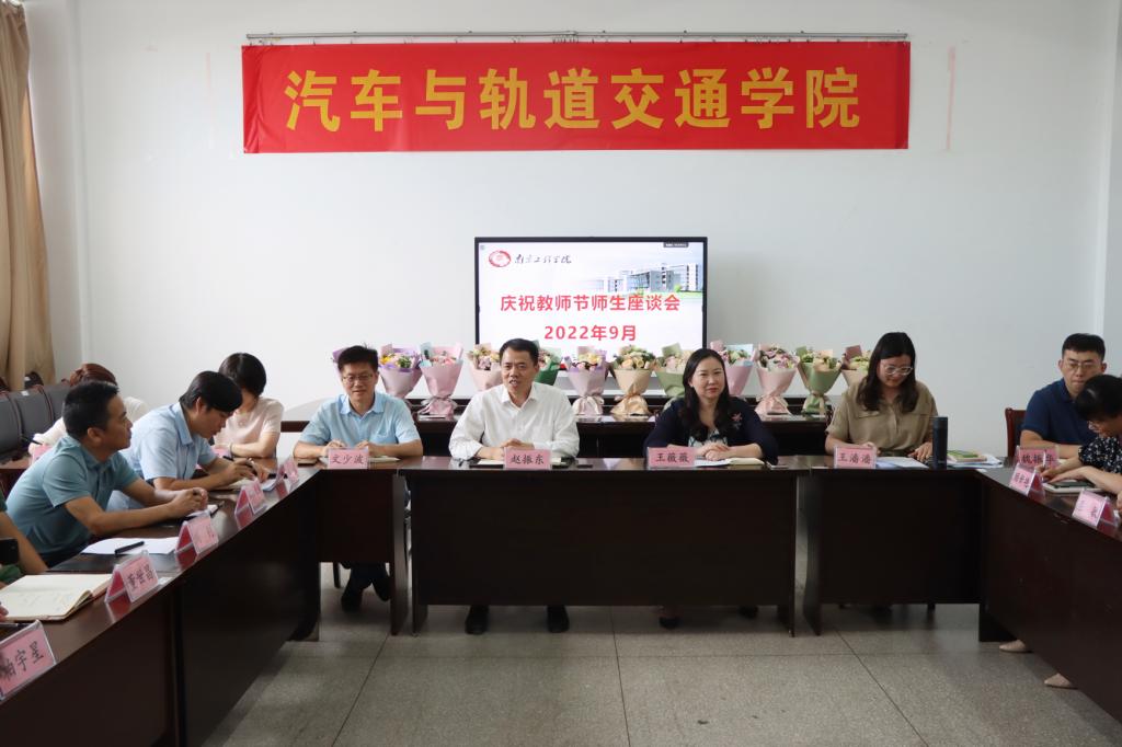 9月7日下午,在第38个教师节到来之际,汽车与轨道交通学院举行庆祝教师节师生座谈会。学院领导班子、系主任、骨干教师代表及部分学生代表参加了本次活动。