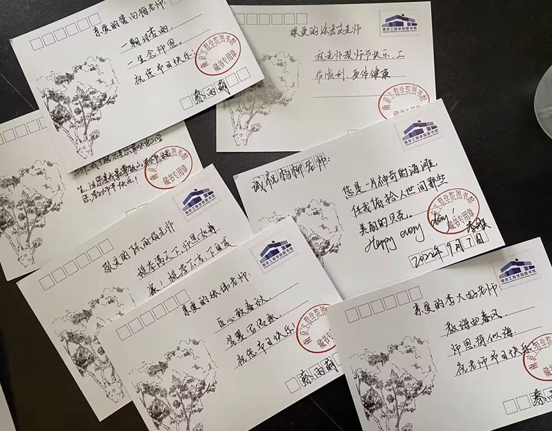 “一朝沐杏雨,一生念师恩”“从您那里除了学到知识,更学到了人生道理”“祝我的老师们节日快乐”……教师节前夕,开云体育的不少老师都收到了一份特殊的礼物——印有学校风光的手绘明信片。明信片的背面,则写满了学生的诚挚祝福。